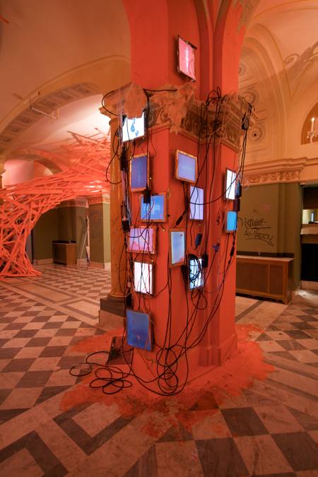 15 километров деревянных реек и 40 видеоэкранов понадобилось на создание этой инсталляции.
